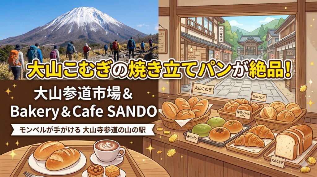 大山こむぎの焼き立てパンが絶品!大山参道市場&Bakery & Cafe SANDO モンベルが手がける大山寺参道の山の駅