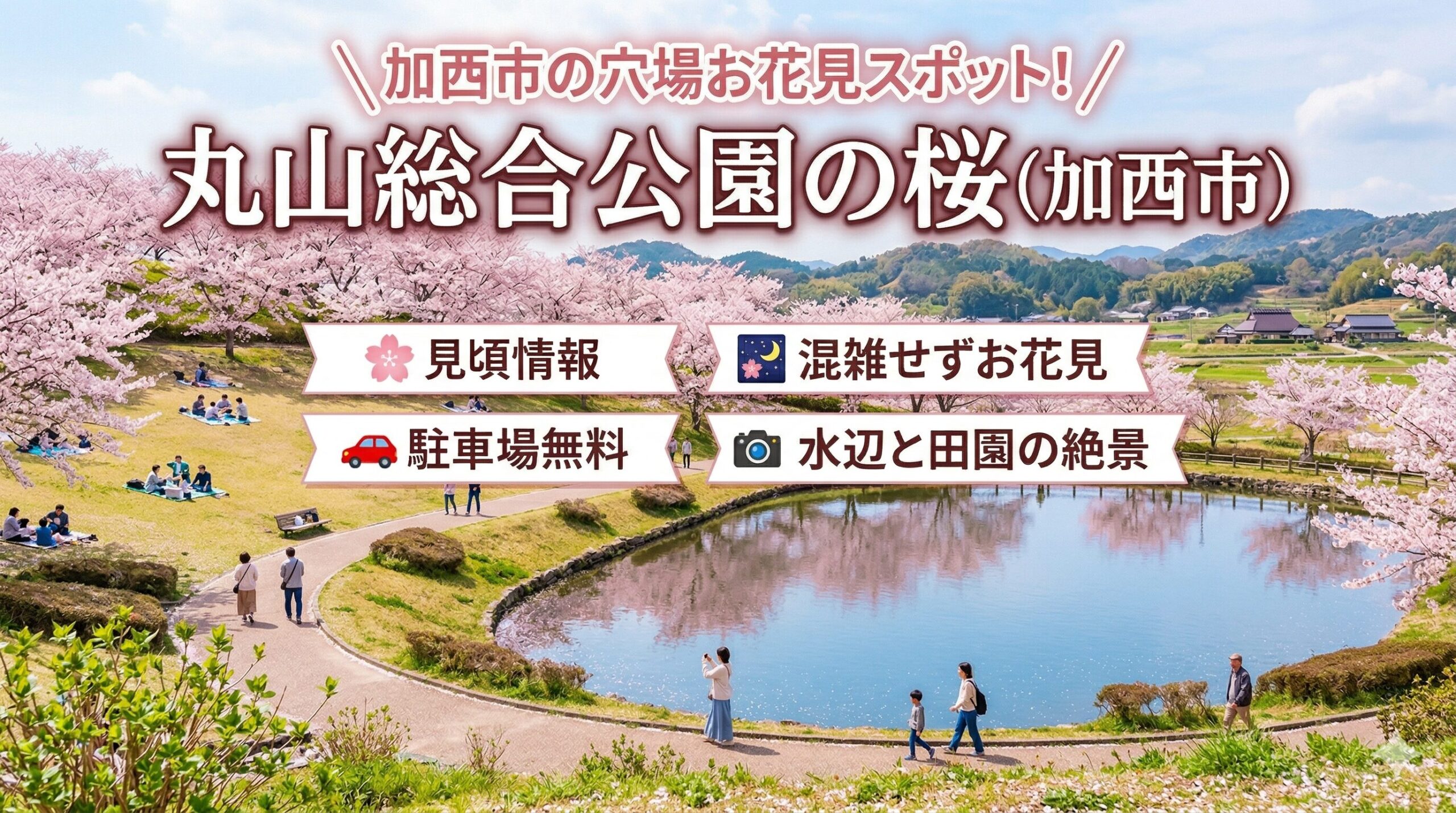 しあわせの村には温泉施設「ウェルネスパーク五色」が隣接しており(日帰り入浴可)、お花見の後に温泉で疲れを癒せます。「桜を見て、温泉に入って帰る」という充実したお花見プランが組めるのはなかなか珍しく、播磨地域から日帰り遠足として組み合わせやすいコースです。