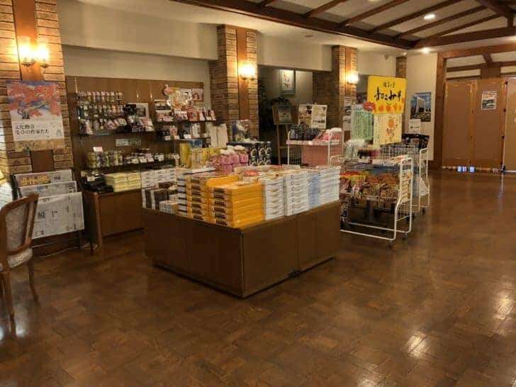 入ってすぐにフロントが右手にあり、左手には少しお土産があります。